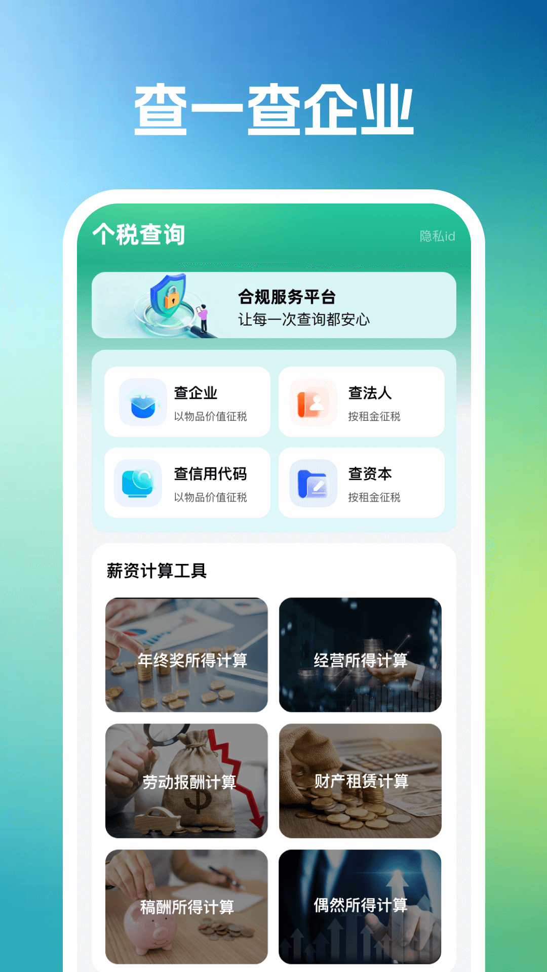 一款集收入测算、政策查询与电子证件管理于一体的合规服务平台,致力于为用户提供安心便捷的智慧财税与证件服务。